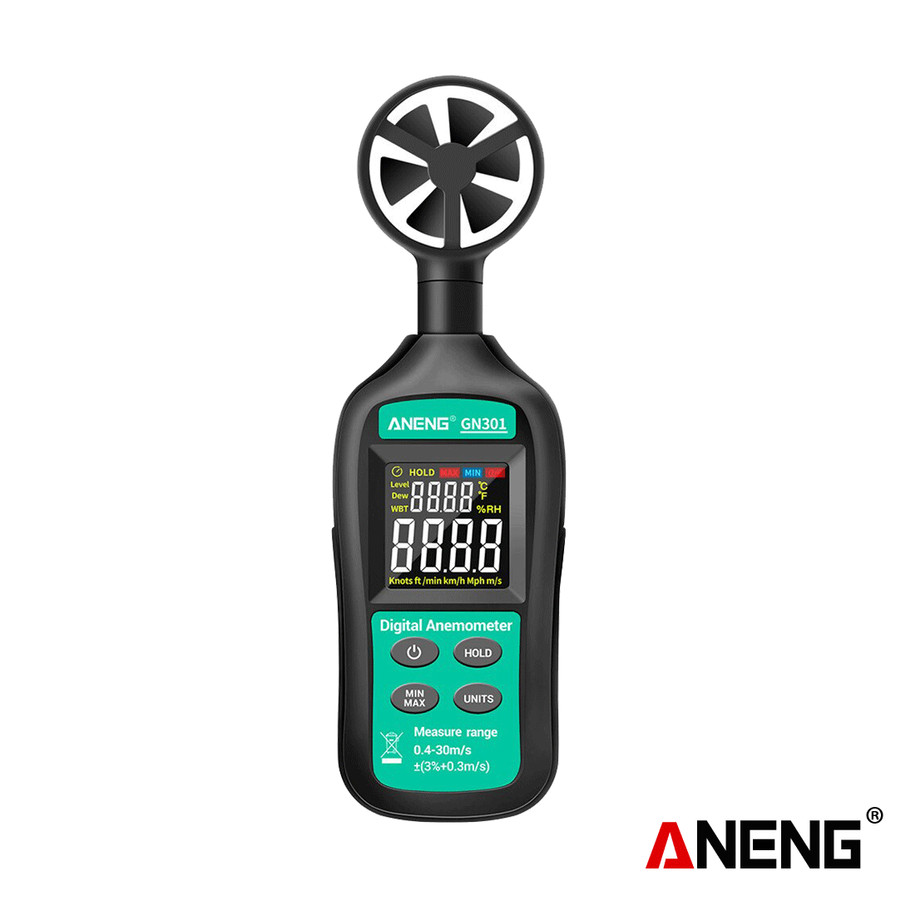 Aneng GN301 dilengkapi dengan sensor kipas presisi tinggi dan layar digital LCD besar yang memudahkan pembacaan data secara real-time. Alat ini mampu mengukur kecepatan angin, temperatur, serta volume aliran udara dengan satu perangkat portabel.