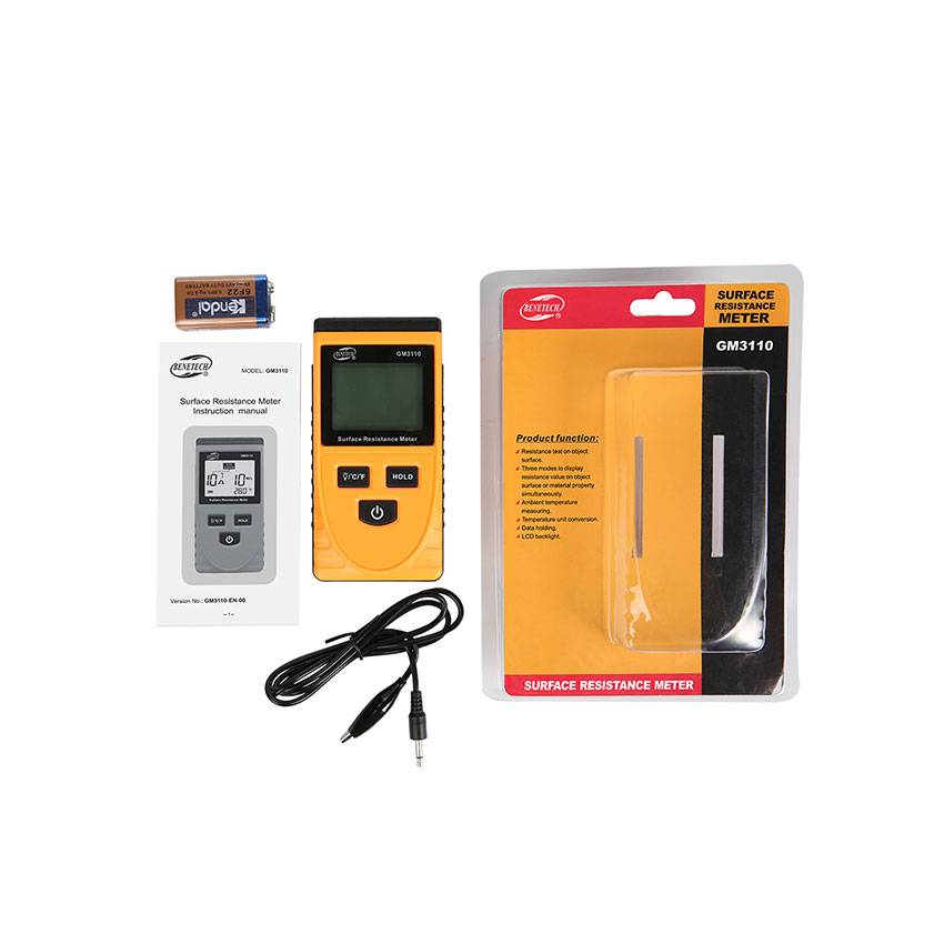 Sebagai salah satu pengukur resistansi untuk permukaan objek, ia dapat mengukur nilai resistansi pada permukaan objek dengan meletakkan dua elektroda paralel di dekat permukaan objek yang akan diukur, sehingga dapat menilai apakah objek yang diukur adalah konduktor, bahan statis, atau isolator; sementara itu meteran dapat digunakan untuk mengukur resistansi terhadap tanah objek, yang secara khusus diterapkan pada bidang anti-statis yang berbeda