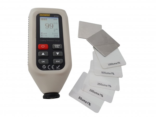 Constant CT51 Coating Thickness Gauge adalah alat ukur ketebalan lapisan (coating thickness) yang dirancang untuk mengukur ketebalan cat, galvanis, enamel, plastik, atau pelapis non-konduktif lainnya yang diaplikasikan pada permukaan logam ferrous (besi, baja) maupun non-ferrous (aluminium, tembaga).