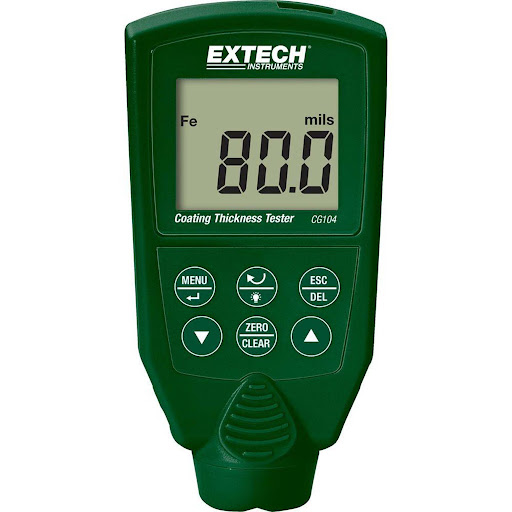 Extech CG104 Coating Thickness Gauge adalah alat ukur ketebalan lapisan (coating thickness tester) canggih yang dirancang untuk mengukur ketebalan lapisan cat, pelapis logam, dan bahan non-konduktif lainnya di atas substrat ferrous (magnetik) dan non-ferrous (non-magnetik).