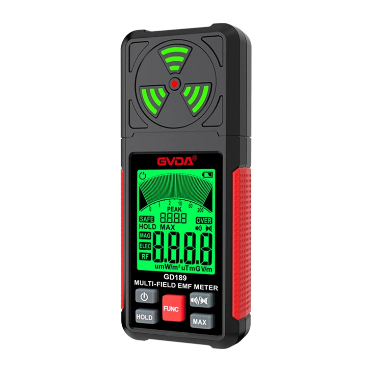 GVDA GD189 adalah alat ukur digital portabel yang digunakan untuk mendeteksi dan mengukur tingkat radiasi medan elektromagnetik (EMF) di lingkungan sekitar. Perangkat ini mampu mengukur medan listrik (electric field), medan magnet (magnetic field), serta radiasi frekuensi tinggi (radio frequency/RF) dalam satu alat.