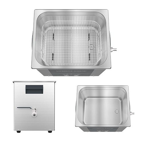 unit ini memiliki tangki internal berbahan stainless steel yang tahan terhadap korosi dan mudah dibersihkan, serta panel kontrol digital untuk mengatur waktu pembersihan dari 0 hingga sekitar 60 menit dan, pada model dengan pemanas, mengatur suhu kerja dari suhu ruang hingga mendekati 100 Β°C untuk mempercepat proses pembersihan.