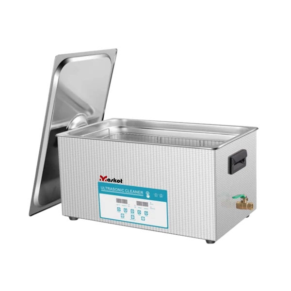 Perangkat ini dilengkapi dengan tangki stainless steel tahan karat berkapasitas 3 L, layar digital LCD untuk pengaturan waktu dan suhu, serta fitur pemanas yang dapat diatur hingga suhu tinggi (sekitar 80–100 °C tergantung model) sehingga membantu meningkatkan efektivitas pembersihan dan mempercepat penghilangan kontaminan.