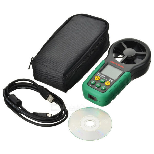 Mastech MS6252B adalah anemometer digital untuk mengukur suhu lingkungan, kelembaban, suhu titik embun, suhu bola basah, kecepatan angin dan volume udara. Ini adalah alat ukur portabel dan profesional dengan lampu latar LCD layar besar dan pengalihan multi-unit.