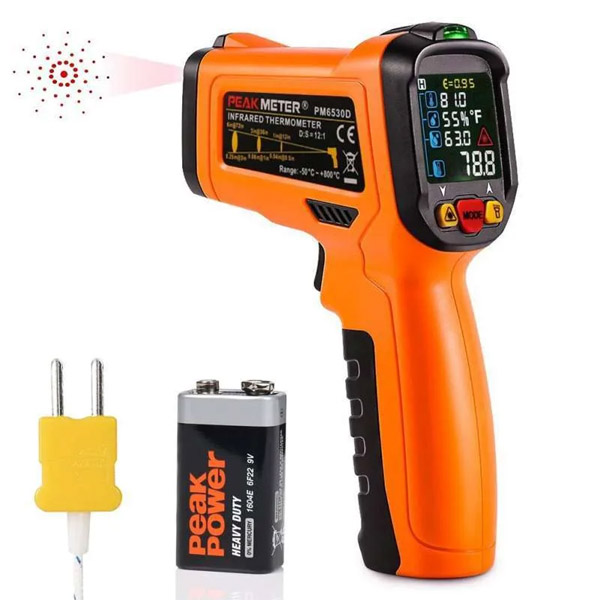 Peakmeter PM6530D Infrared Humidity Thermometer merupakan Seri PM6530 layar penuh warna dan termometer inframerah non-kontak yang memungkinkan Anda mengukur suhu objek dengan mendeteksi energi inframerahnya. Serbaguna untuk memasak, pendingin, otomotif, AC, HVAC dan rumah tangga lainnya. Termometer Inframerah, Pengukur Kelembaban, Dew Meter dalam satu alat sangat Praktis dalam mengukur suhu dan kelembaban objek, tanpa perlu menyentuh.