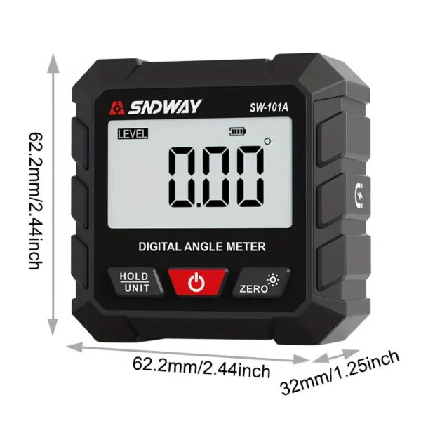 SNDWAY SW-101A Digital Inclinometer (Water-pass/Digital Angle Finder) adalah alat sudut digital kompak dengan magnet empat sisi yang memberikan pengukuran kemiringan dalam rentang hingga 4 × 90°—ideal untuk pengukuran kemiringan, sudut pemasangan, leveling, instalasi konstruksi, kayu, logam, pipa, dan lainnya.