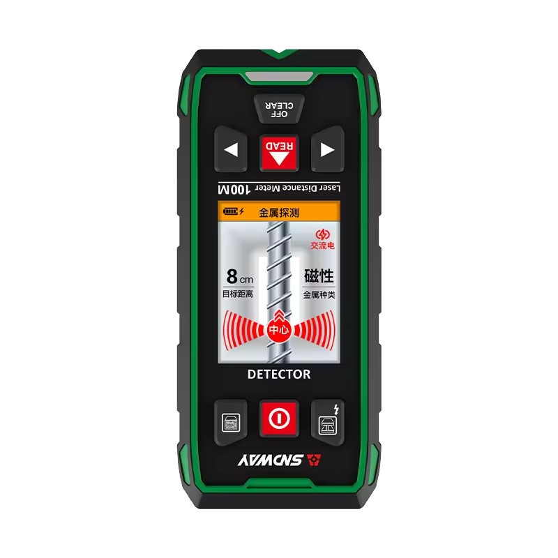 SNDWAY SW-6100GT adalah alat ukur laser multifungsi yang tidak hanya mengukur jarak hingga 120 meter, tapi juga memiliki fitur scanner dinding untuk mendeteksi kayu, logam, dan kabel di dalam tembok—menjadikannya cocok untuk keperluan konstruksi, renovasi, dan inspeksi.
